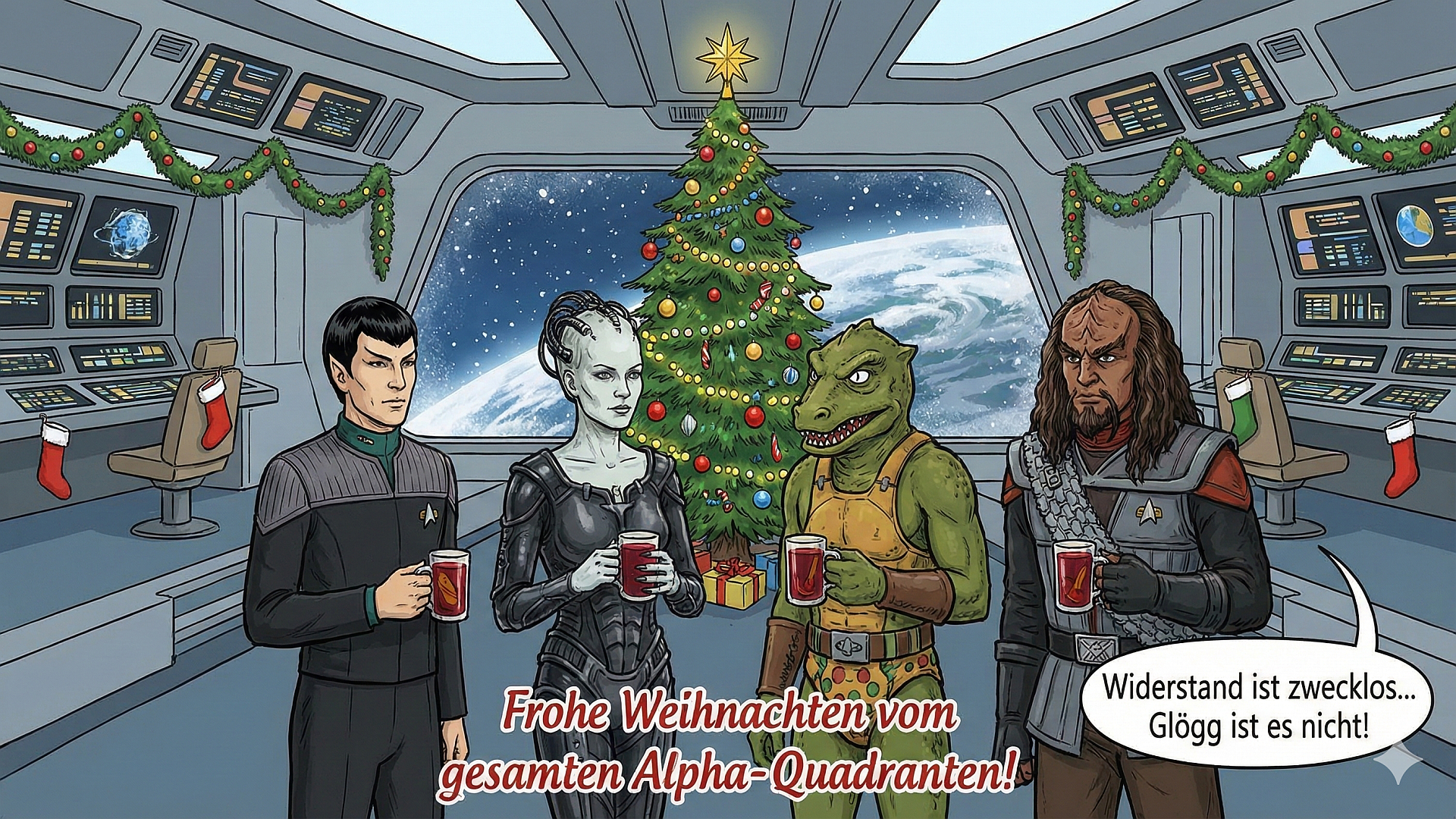 Die Bilderstellung direkt am Smartphone oder im Web kann eigentlich jeder nutzen: Einfach unter gemini.google.com mit dem Google Konto anmelden oder direkt am Smartphone die Gemini App herunterladen. Dann kann's auch schon losgehen. Wichtig: Je genauer du im Prompt (also in der Anweisung) du dein Bild beschreibst, desto besser wird dasEs ist schon ziemlich verblüffend und teilweise amüsant mit anzusehen, was sich die KI aus den teils kruden Anweisungen "ausdenkt". Und während Text weitgehend korrekt übernommen wird, "denkt" sie sich (wie am Star Trek Bild zu sehen) einfach so einen ihrer "Meinung" nach passenden Text aus. Bei den 9-fachen Weihnachtsgrüßen aus den Bundesländern hat sie es auch nach mehrmaligen Versuchen nicht geschafft, anstatt nur 7 tatsächlich Sehenswürdigkeiten aus 9 Bundesländer anzuzeigen.
