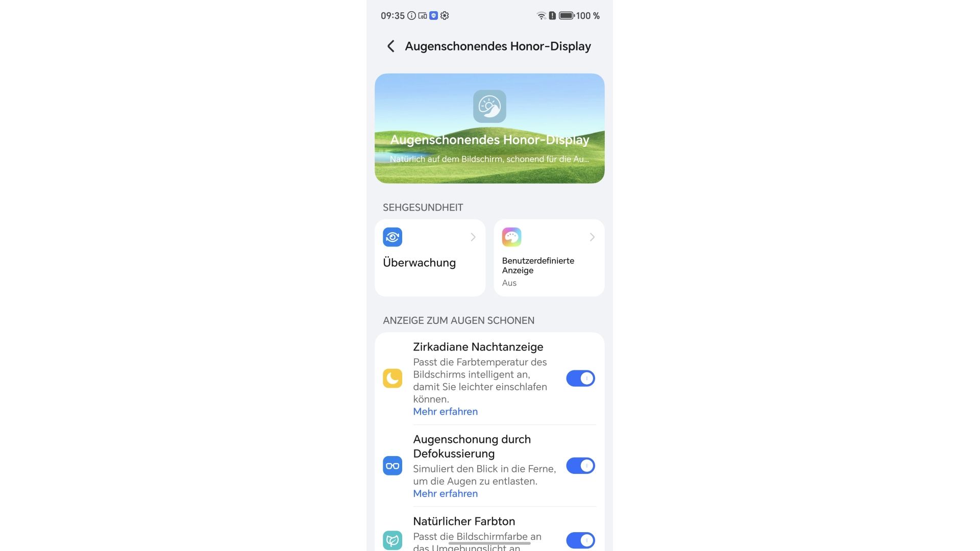 In das Display dürfte viel Entwicklungsarbeit eingeflossen sein. Anders lässt sich der extrem gute Eindruck nämlich nicht erklären. Das 6,71 Zoll LTPO OLED Panel macht eine hervorragende Figur. Es unterstützt alle gängigen HDR-Standards (HDR10+, HDR Vivid und DolbyVision) und bringt genau bei solchen Inhalten mit bis zu 6.000 nits auch die Helligkeit mit, um den Content extrem scharf, kontrastreich und farbenfroh wiederzugeben.Zudem gibt es mehr Augenkomforteinstellung, als ich jemals auf einem Gerät gefunden habe. Sie alle sind im Menü unter "Augenschonendes Honor-Display" zu finden. Mithilfe von Bildschirmtests lassen sich Helligkeit, Kontrast und Farbwiedergabe anpassen. Dazu kommen ein Blaulichtfilter und die Farbtonanpassung abhängig von der Umgebung. Es verfügt zudem über eine Defokussierungsoption: Das soll gegen temporäre Myopie (= kurzfristige Kurzsichtigkeit aufgrund Überabstrengung der Augen bei Naharbeit) helfen. Zu guter letzt gibt es noch Features zur Linderung von Reiseübelkeit. Honor scheint hier an alles gedacht zu haben.