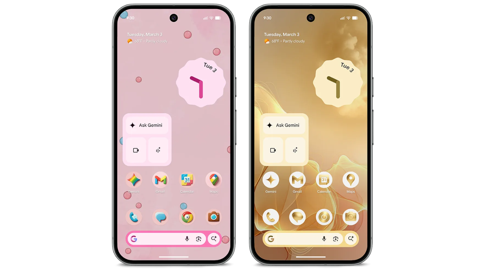 Der Home-Screen kann nun mithilfe von KI einheitlich angepasst werden. Zum Anfang stehen 5 unterschiedliche Stile zur Verfügung. Das besondere daran: Nicht nur der Hintergrund, sondern auch die einzelnen Icons werden an den Stil angepasst. Das ist auch der Grund, weshalb hier KI eine große Rolle spielt.