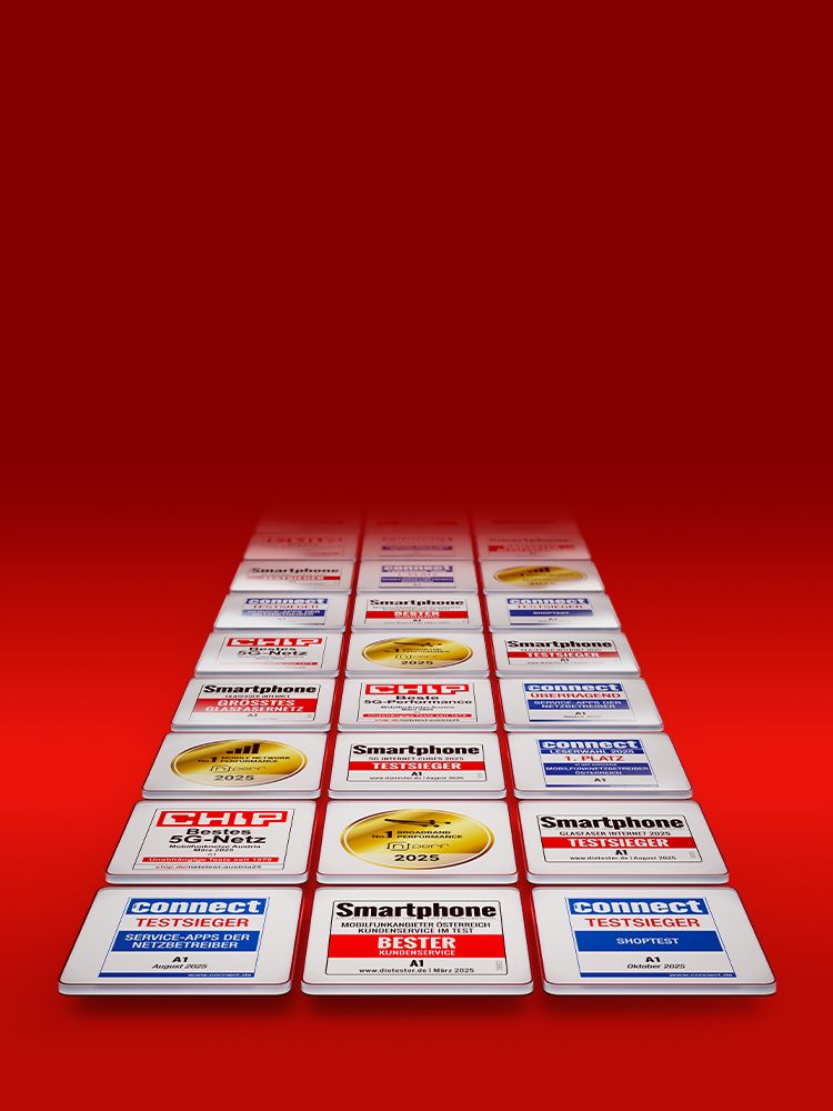 Und auch die Auszeichnungen für unsere Shops und unseren Kundenservice machen einiges klar. Wer bei A1 ist, hat´s einfach gut!